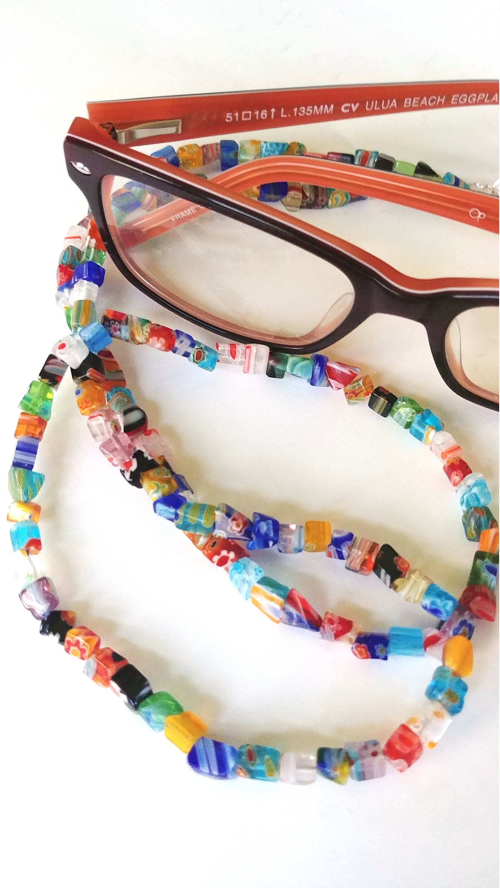 Eyeglass Holder, Colorful Beaded Eyeglass Chain, Millefiori Reading Glasses Lanyard,Chain for Glasses Holder, Birthday Gift Idea