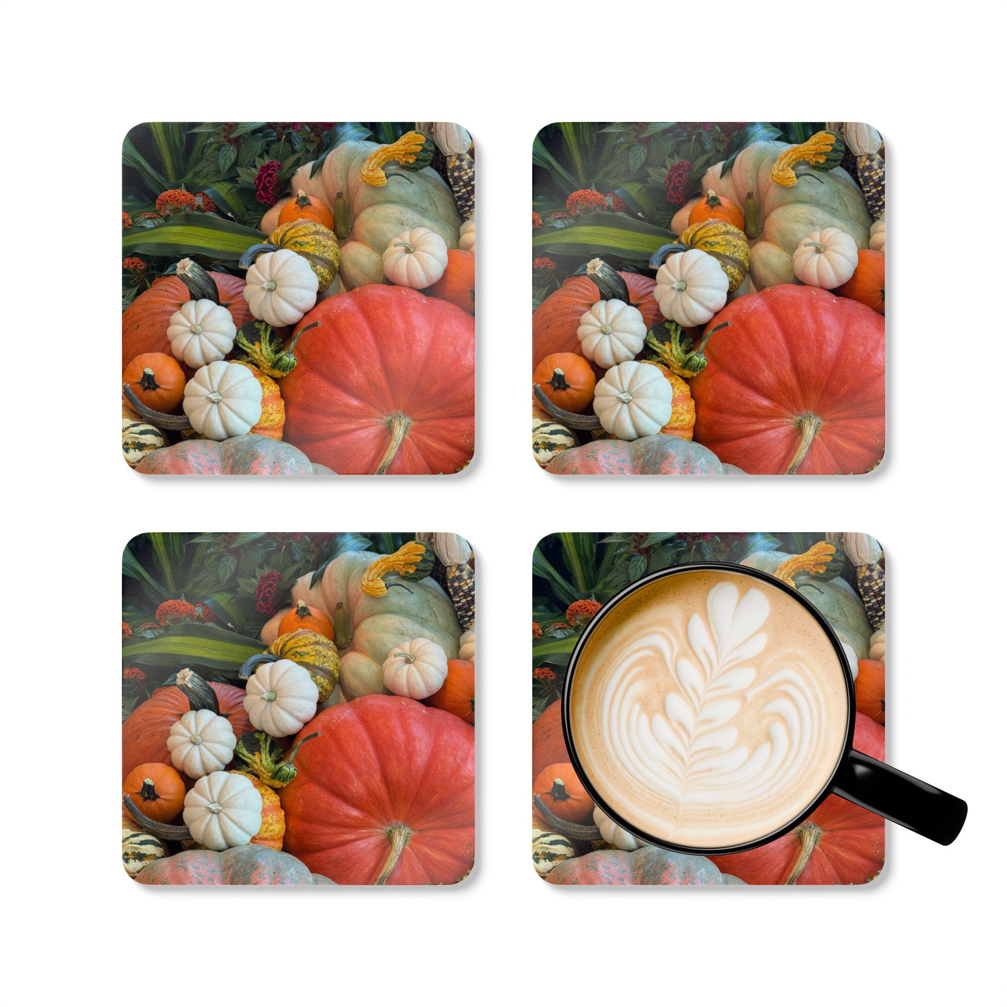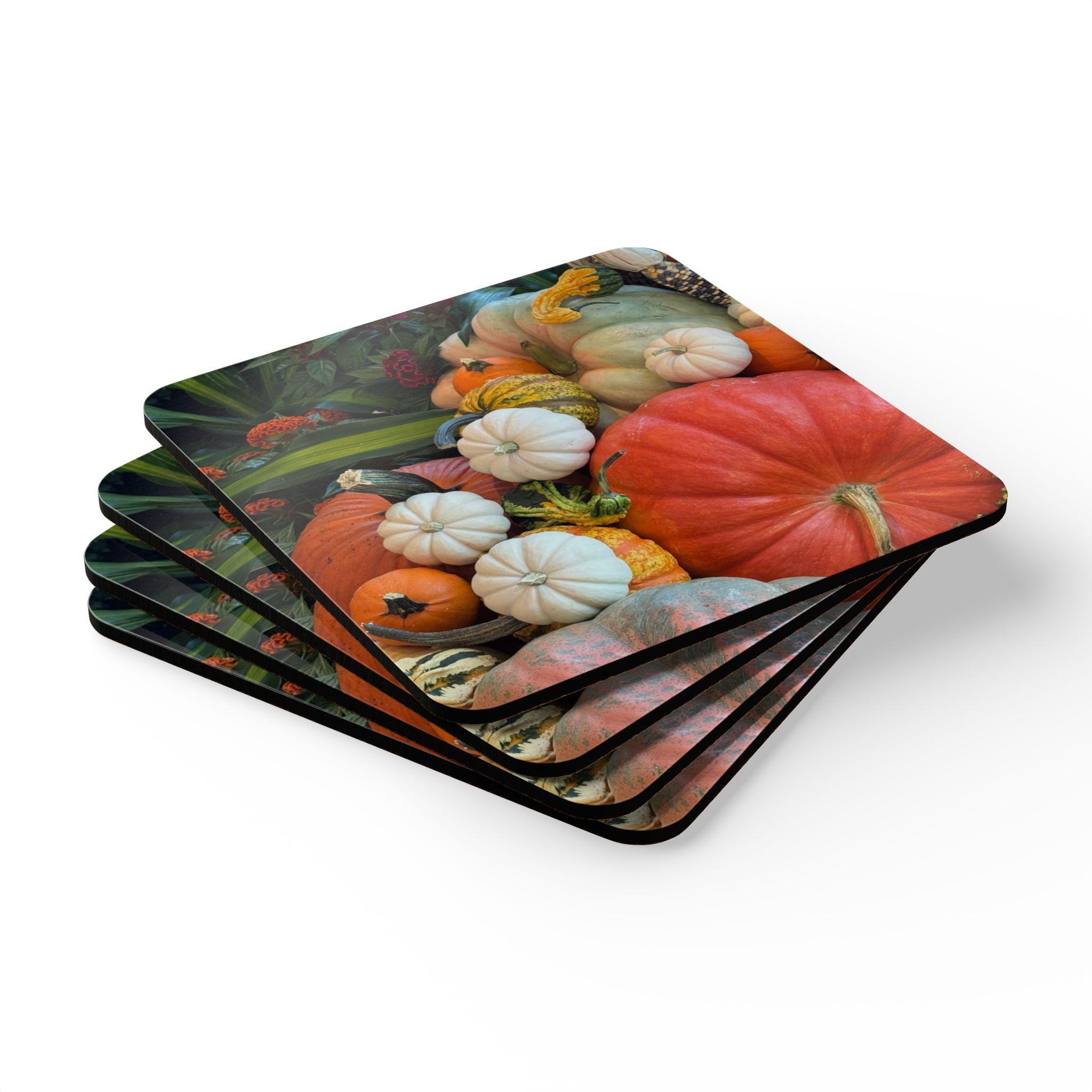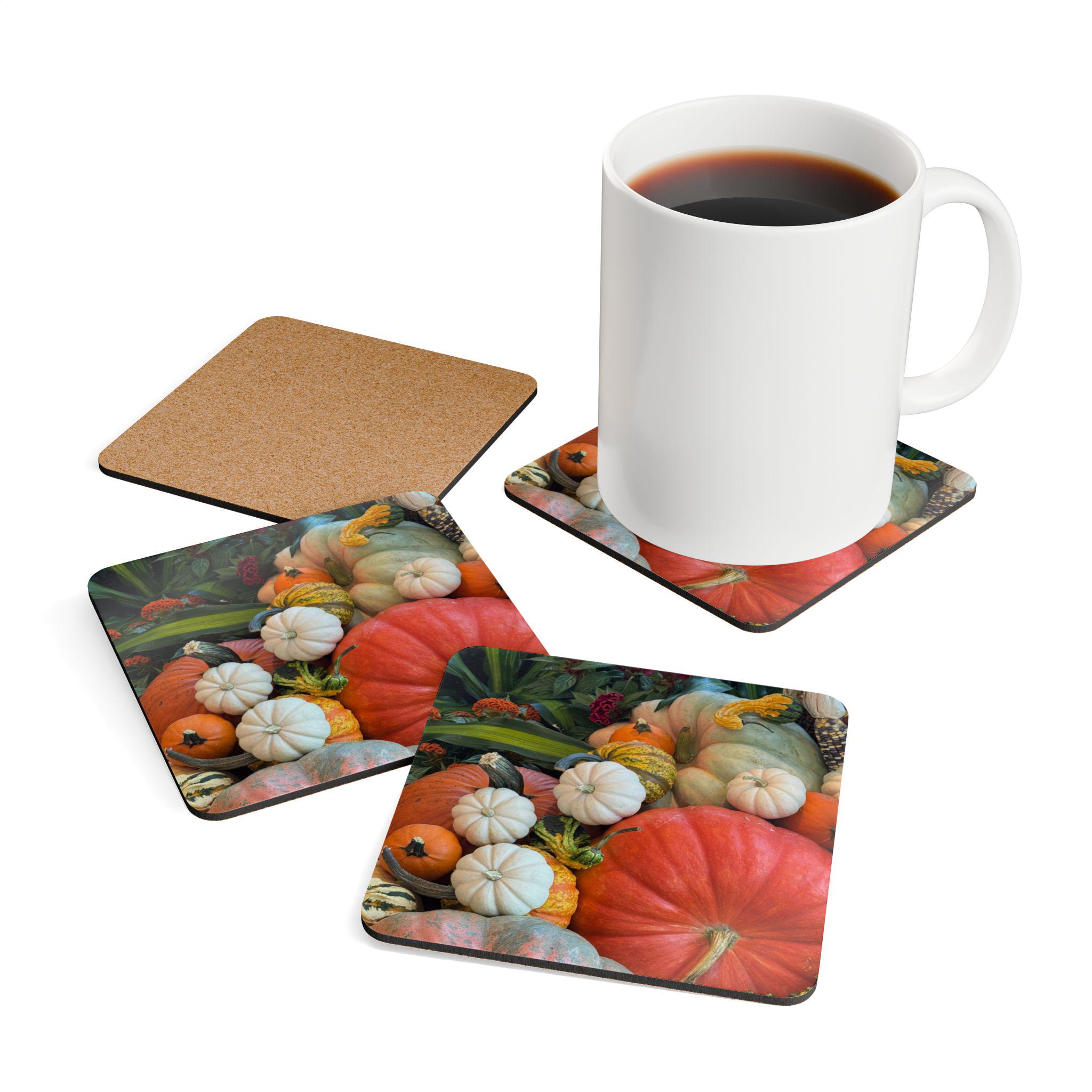 Autumn Pumpkin Cork Coaster Set | Fall Decor, Thanksgiving Tableware, Home Gift, Kitchen Accessories, Rustic Coasters
