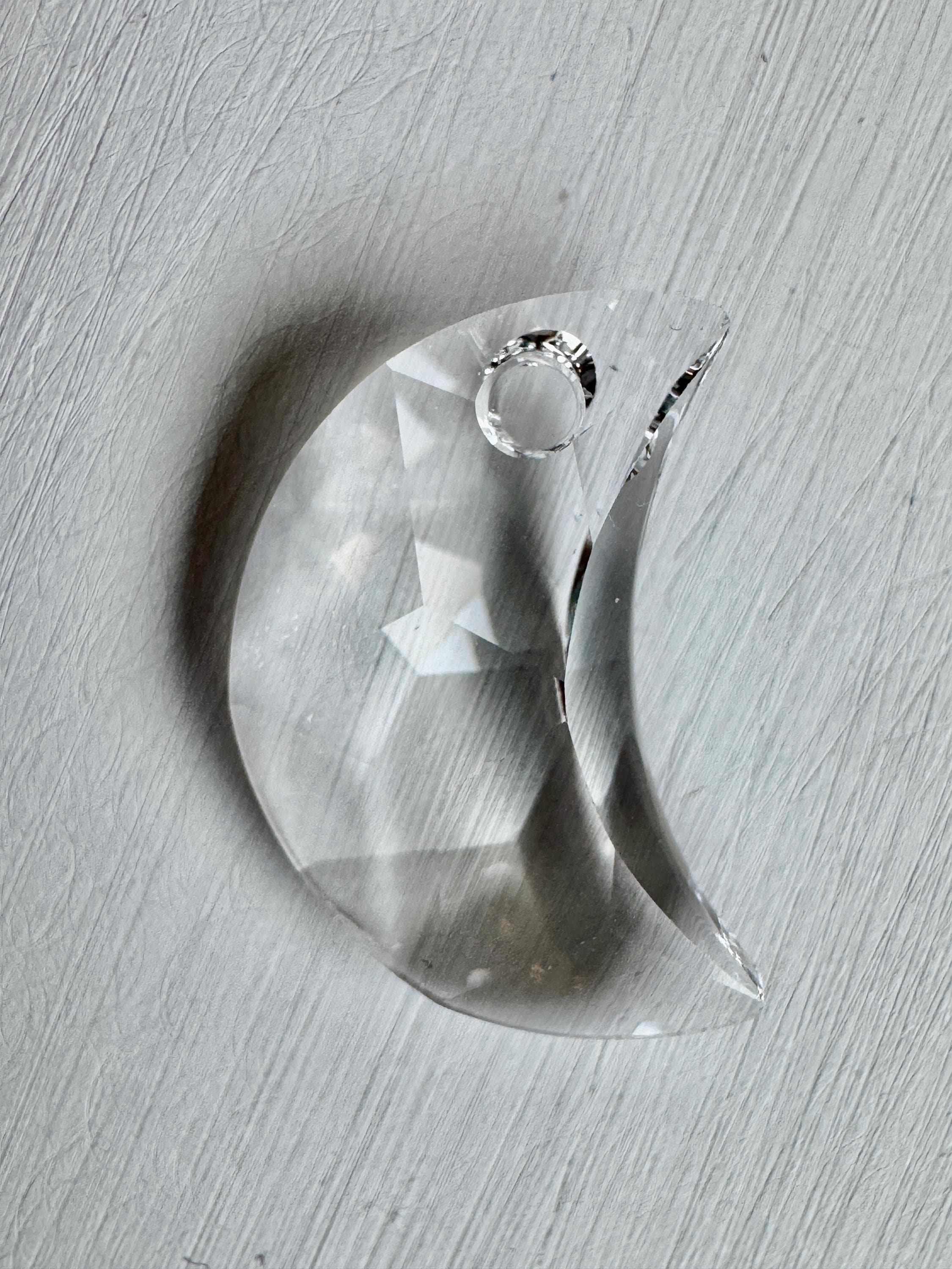 This listing is for 1 crystal clear moon shaped pendant. It is faceted, so it reflects the light beautifully when worn. It is 16mm long.